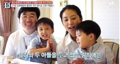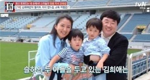 김희애 아들 둘다 제주도의 국제고등학교에 재학 중이라고 전해진 바 있는데, 해당 학교는 1년 학비가 약 3500만원에 달한다고 하며 현재 큰 아들은 국제고를 졸업하고 피아노 전공으로 대학교에 입학한 것으로 알려졌습니다.